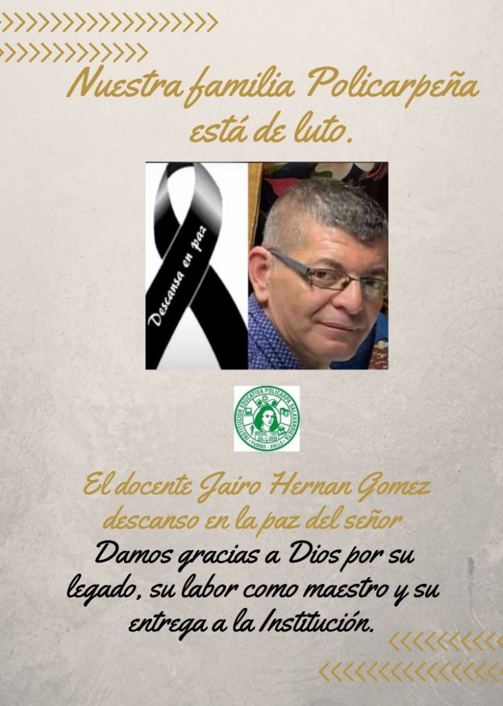 El docente Jairo Hernán Gómez descansó en la paz del señor. Damos gracias a Dios por su legado, su labor como maestro y su entrega a la institución.